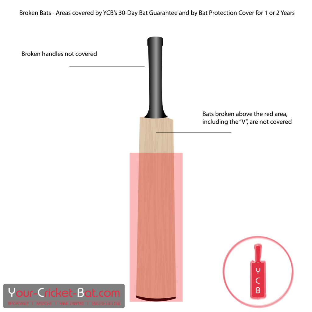 - Only bats broken from the toe of the bat to the "V" of the bat will be covered as per the image below